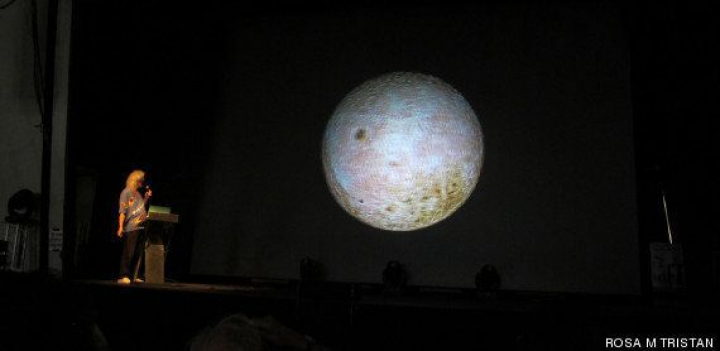 Antes que Hawking, el mismo escenario lo había ocupado Brian May, exguitarrista del grupo Queen y astrónomo, que ofreció un espectáculo visual sorprendente al mostrar las imágenes estereoscópicas que logra con fotos astronómicas, creando la ilusión del 3D.