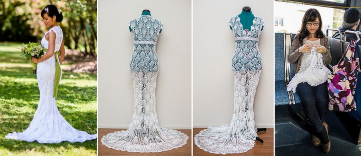 Una usuaria de Reddit, Alkikat, ha colgado estas fotografías del vestido que se hizo ella misma para su boda. Según cuenta, lo hizo de ganchillo aprovechando su trayecto en autobús de todas las mañanas durante cinco meses.