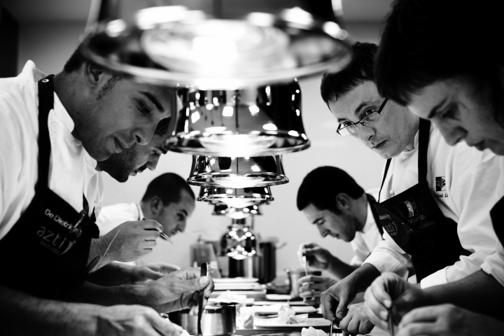 Así, de esta simbiosis entre cacerolas y tubos de ensayo, a la que luego se uniría el entonces recién creado Basque Culinary Center, nació el IJGFS. El equipo de Aduriz y Lasa se distingue por el talante innovador de su cocina tecnoemocional, una de las encarnaciones que ha tomado lo que otros denominan gastronomía molecular y que suele asociarse al nombre de Adrià, sin que el chef catalán haya reivindicado para sí esta etiqueta. Tampoco lo hace Arboleya: "No me gusta el concepto, puede asustar a la gente y es redundante, porque todo es química".