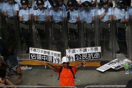 Tras ocho días de protesta y después de que la Policía haya empleado este fin de semana gases lacrimógenos y de pimienta para dispersar a los manifestantes, el movimiento se prepara ahora frente a una posible intervención para su desalojo antes de la celebración este miércoles del Día Nacional Chino.