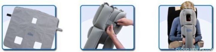 La idea de esta almohada, que inicialmente no ocupa nada, pero que cuando se hincha parece un dormitorio tamaño mini, es ayudarnos tanto en los viajes en transporte público como en coches particulares. Si lo abres funciona como un segundo respaldo.