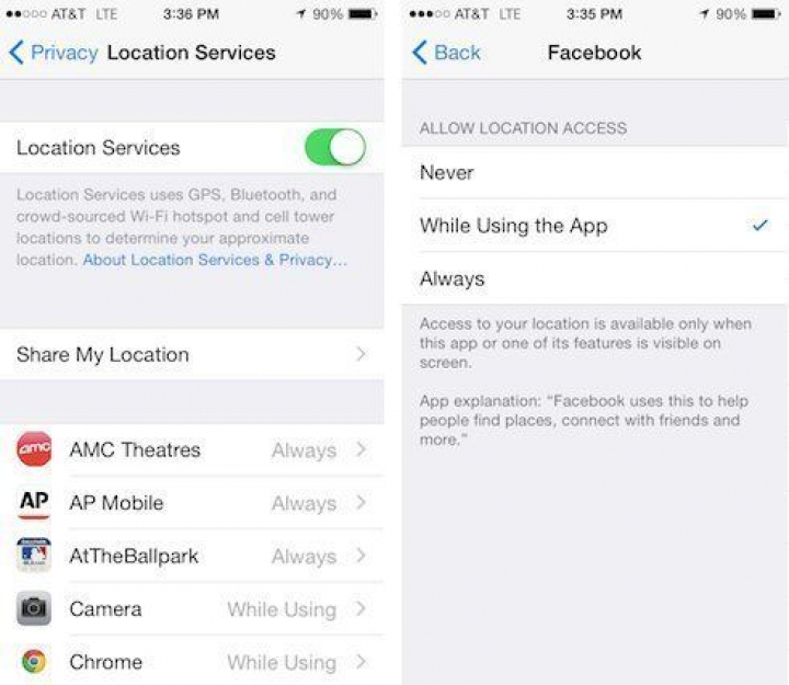 Muchas apps están ahora rastreando tu localización —famosas por acabar rápidamente con la batería de tu móvil—. Para comprobar que sólo tienes activado el servicio de localización en las apps necesarios, ve a Ajustes > Privavidad> Servicios de localización. Antes podías activar o desactivar el servicio. Pero ahora, algunas apps tienen la opción Durante el uso. Es una buena opción para Facebook, por ejemplo, porque te dejará ver los amigos cercanos y postear tu localización cuando tengas la aplicación abierta, pero no dejará que la red social te envíe notificaciones sobre amigos cercanos cuando esté cerrada.