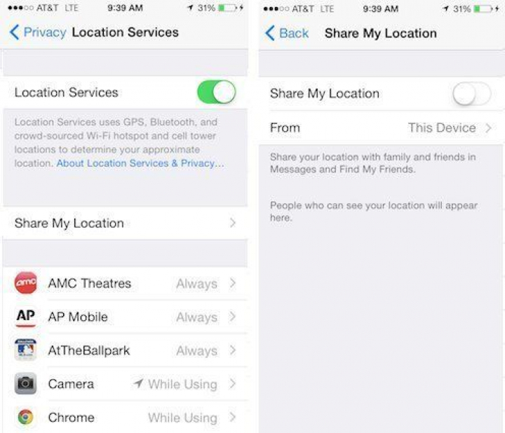 La nueva opción Compartir ubicación te permite compartir tu anterior localización con tus contactos a través de mensajes. Es una gran característica para intentar encontrarse con gente, pero también una buena forma de agotar la batería ya que constantemente se está actualizando. Puedes apagarlo yendo a Ajustes > Privacidad > Servicios de localización > Compartir mi ubicación. Ayuda a no agotar la batería y, si luego quieres usarlo, sólo tienes que volver ahí y activarlo.