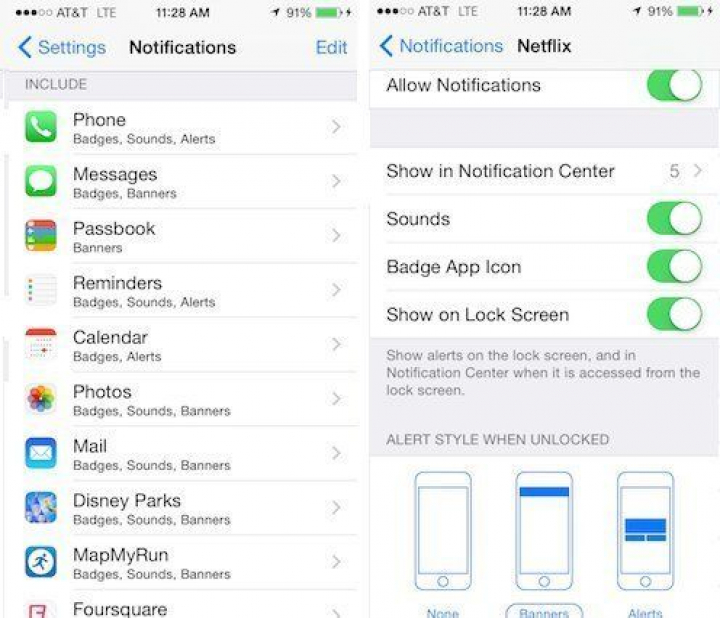Y ya que estamos en esto, también puedes limitar las otras aplicaciones que usan las notificaciones yendo a Ajustes> Centro de notificaciones. Desplázate hasta el final. Te sorprenderá la cantidad de aplicaciones que estás dejando que interrumpan tu vida. ¿Realmente necesitas tener recordatorios de Netflix? No.