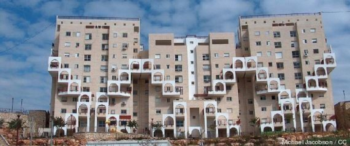 Edificios residenciales en la colonia de Modi'in Illit, en Cisjordania (Foto: Michael Jacobson / CC )