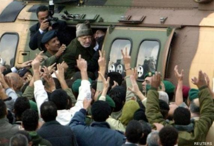 Arafat el día que abandonó en helicóptero Ramala rumbo al hospital de París donde murió en 2004, supuestamente envenenado