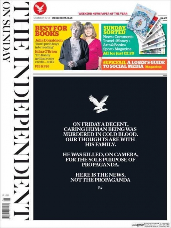 Alabanzas a la portada de 'The Independent' sobre la decapitación de Alan Henning