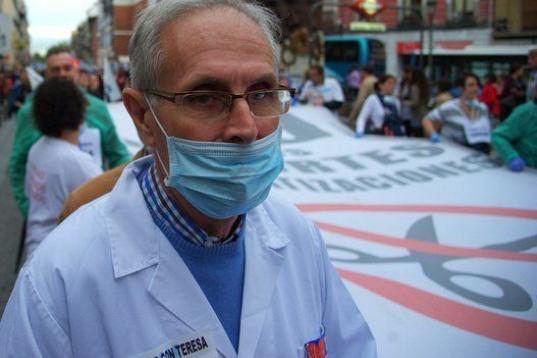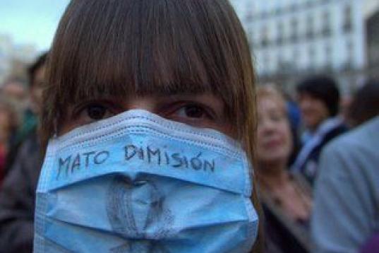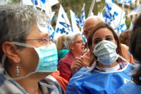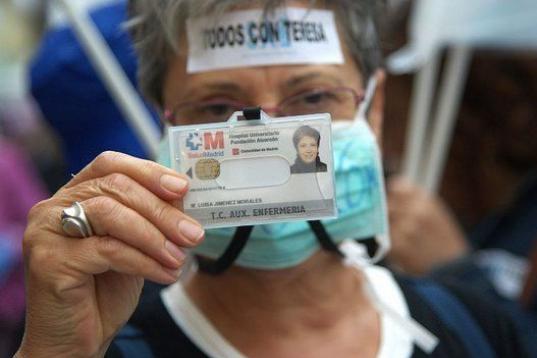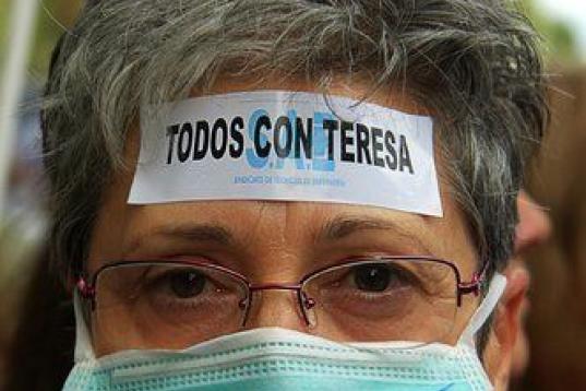 Los manifestantes, ataviados con batas blancas, mascarillas y portando pancartas en las que se leía "Teresa somos todos", han pedido además la dimisión del Gobierno, de la ministra de Sanidad, Ana Mato, y del consejero madrileño del mismo ramo, Javier Rodríguez.