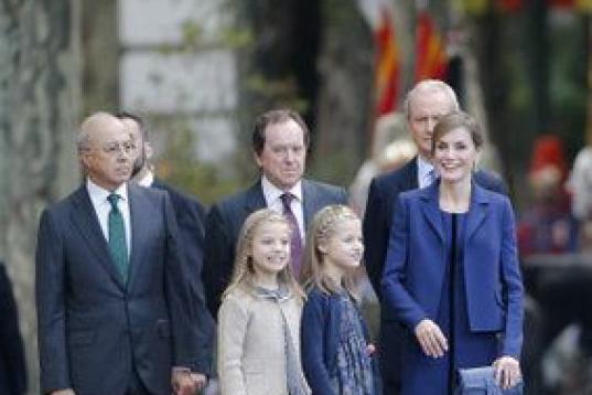 Los monarcas estarán acompañados durante el desfile en la tribuna principal por el presidente del Gobierno, Mariano Rajoy; los presidentes del Congreso y del Senado, Jesús Posada y Pío García-Escudero, respectivamente; así como ministros y autoridades nacionales, autonómicas y locales.