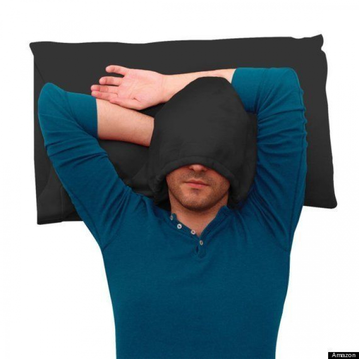 La almohada con capucha: el invento para dormir en los viajes (FOTOS)