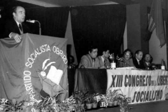 El XXVII congreso del PSOE, el primero en España tras la Guerra Civil, se celebró en Madrid en diciembre de 1976, sin que el partido fuera aún legal, pero con la tolerancia del Gobierno de Suárez. Con el PCE apuntándose al eurocomunismo del italiano Enrico Berlinguer y el francés George Marchais -en la práctica, una especie de socialdemocracia de los partidos comunistas europeos que habían roto con la tutela de Moscú- las resoluciones congresuales de los socialistas tenían un lenguaje mucho más radical, como la de aquel año: