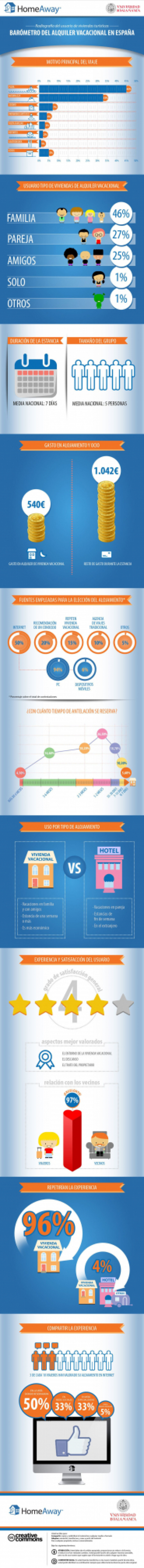 Mejor playa que montaña, y en familia que en pareja. Así es el alquiler vacacional en España, según el primer barómetro de la empresa Homeaway y la Universidad de Salamanca. ¿Y cuánto gastamos de media? Aproximadamente unos 226 euros al día por familia, entre el alojamiento y el resto de comodidades.