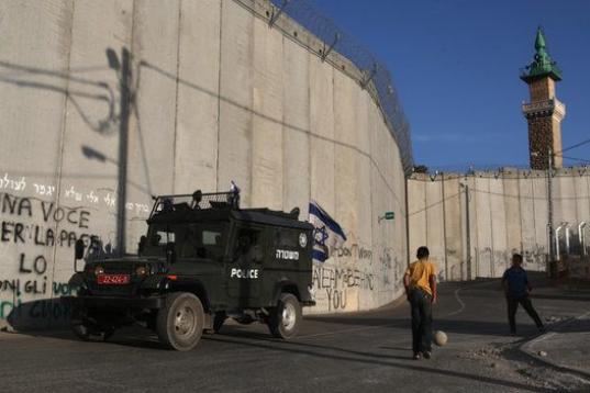 Unos niños juegan en el muro que separa Israel de los territorios palestinos.