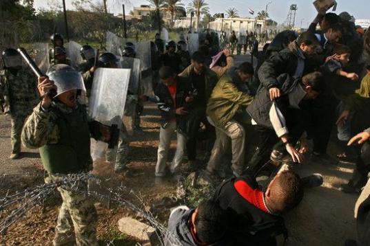 Militares egipcios cargan contra un grupo de palestinos en la franja que divide las dos zonas.