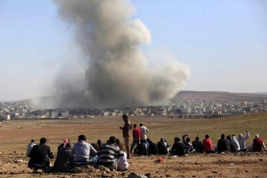 Un grupo de turcos observa en la frontera un bombardeo en la vecina ciudad siria de Kobani, asediada por el Estado Islámico.