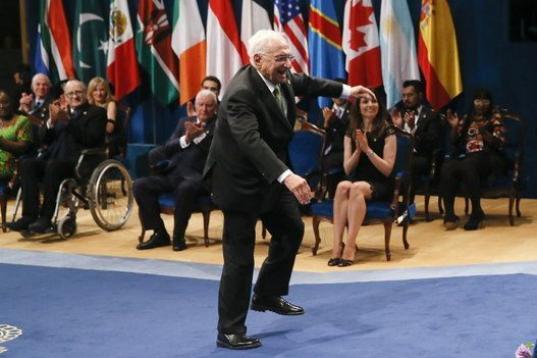 Joaquin Salvador Lavado, alias Quino, tras recoger su premio como creador de Mafalda.