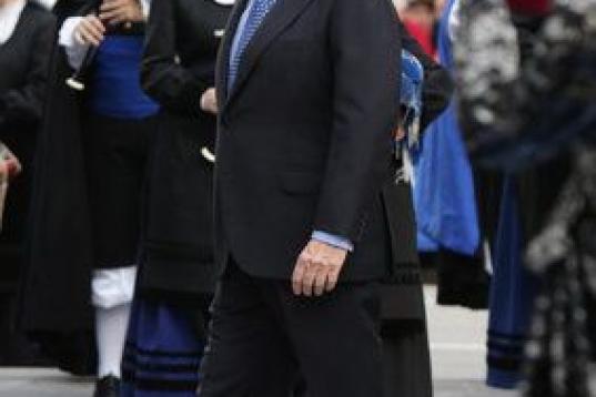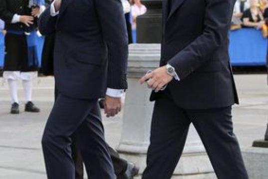 Los reyes de España, Felipe y Letizia, junto al presidente del Principado, Javier Fernández (i), y el presidente de la Fundación que otorga los galardones, Matías Rodríguez Inciarte.