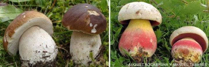 "Los boletus del grupo edulis son muy apreciados porque su carne suele ser muy compacta, con un olor y un sabor muy agradable. En particular, el blanco (B. edulis) tiene un sabor dulce, como a avellanas; puede consumirse crudo, aunque para algunas personas puede resultar difícil de digerir", explica la doctora María P. Martín, jefa del Departamento de Micología del Real Jardín Botánico, del CSIC, y responsable científica de la aplicación FungiNote, disponible para iOS. Esta app es una especie de guía de campo para orientar a los usuarios en la identificación de hongos, entender sus propiedades y sus características. Además ayuda a diferenciar las setas comestibles de las que no lo son. Es el caso del boletus edulis (izquierda) y el satanás (derecha).