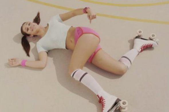 En el anuncio se ve a una patinadora tirada en el suelo que se dirige a un chico al que, señalándose uno de sus gemelos, le dice "¡ay!, me duele aquí". "¿Qué?", responde el joven, vestido como un jugador de baloncesto, mientras levanta una caña de chocolate de la marca Qé!. "No, aquí", responde la chica, ahora señalándose un muslo. "¿Qué?", insiste el chaval. "Aquí", añade finalmente la chica, apuntando a su trasero. "Cómete el mundo con Qé!", concluye el anuncio.