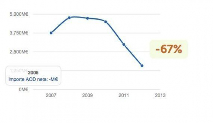 La financiación pública de la cooperación al desarrollo acumula una caída del 70% desde 2008. Le siguen, a gran distancia, Grecia (53% de reducción) e Islandia (46%)