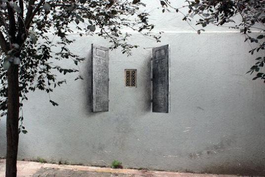 Bajo los títulos de Lock (cerradura), Poster y Shutters (contraventanas), los tres dibujos, situados en calles próximas entre sí, forman un trío de ventanas ciegas. Según explica el propio artista por teléfono al Huffington Post (estos días se encuentra en Londres trabajando en su próxima obra), "quería utilizar estos tres trampantojos para hablar de forma poética sobre la falta de libertad".