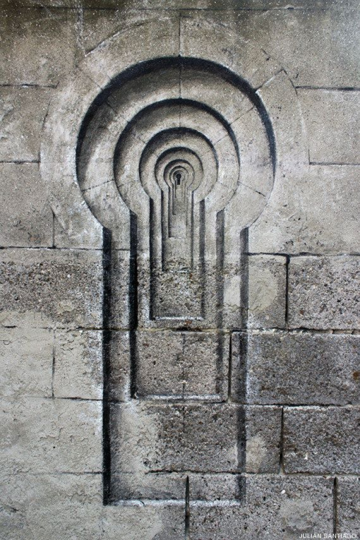 "Me inspiro en cualquier tipo de arte, en la literatura, en el cine, novelas gráficas, lo que pasa alrededor", enumera Pejac, quien se siente libre a la hora de trabajar. "Intento ser honesto conmigo, no me suelo meter presión de si va a gustar o no".
