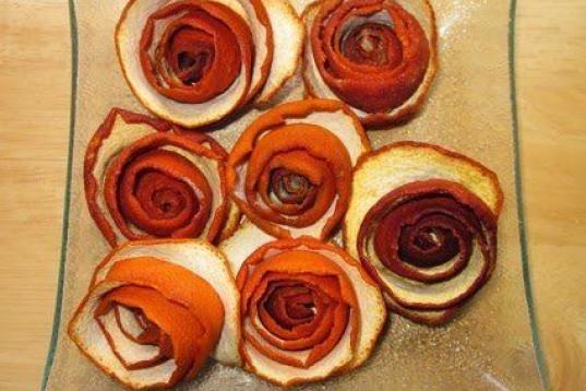 Basta con pelar la naranja sin que se rompa la piel y enrollar ésta formando flores. Consulta el proceso completo en El laboratorio de Clementina