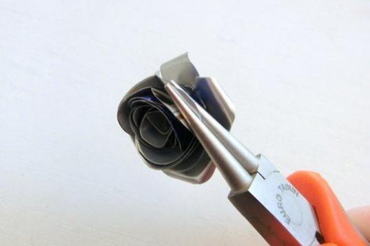 Haz con la lata pequeños cuadrados y a partir de cada uno haz un círculo. Después abre el círculo en forma de espiral. Convierte esa espiral en pétalos y enróllalos alrededor de un palillo para darle forma. Los alicantes te ...