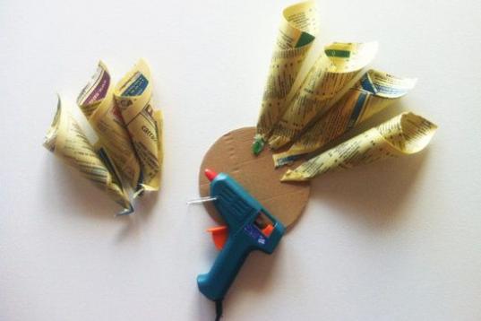 — Cartón (para la base) y una guía de teléfonos antigua (o hojas de papel para reciclar)
