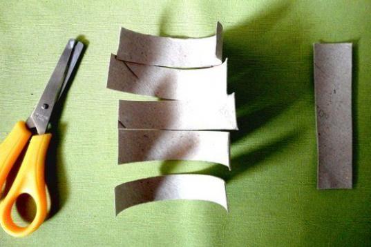 Cortar el rollo de papel y eliminar un trozo de 2,5 centímetros como el de la imagen. A continuación dividir la parte más grande en cinco tiras. Utilizar cuatro de ellas para hacer los pétalos más grandes. Para ello hay que d...