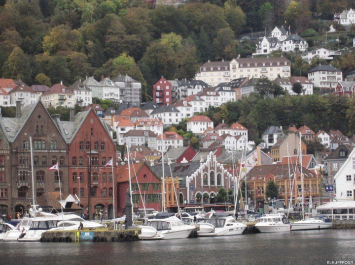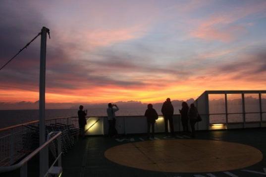 Los 12 barcos que componen la flota de Hurtigruten no sólo transportan viajeros. Su gran estómago engulle también mercancías, aloja hasta 45 vehículos y es el hogar durante unos días de hasta mil viajeros, 45 coches y cientos de pasajeros de corta distancia. Y a todo un ritmo sosegado: el Hurtigruten viaja a una velocidad máxima de unos 15 nudos, más o menos la misma que coge cuando se va a en bicicleta a buen ritmo. Es la forma de centrarse en las vistas, el ritmo necesario para contemplar la casas rojizas, azules, verdes que salpican los acantilados con desesperante hermosura.