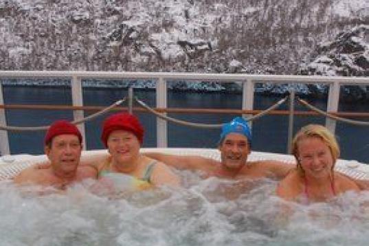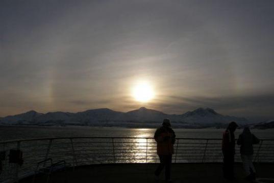 El tercer caso es pan comido: los barcos cruzan el Círculo Polar Ártico, a 66º33’ Norte, una franja que se rebasa dejando a mano izquierda una representación de la bola del mundo sobre el risco de Cabo norte, que marca el punto más septentrional de Europa. Los pasajeros que cubran la ruta recibirán su correspondiente bautismo del paso de Círculo, un ice-bucket con cucharón sopero y agua del polo.