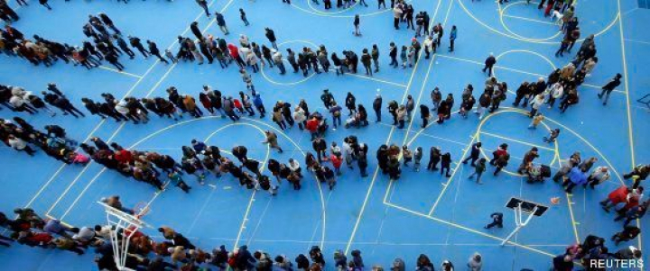 Todos esperaban este domingo a Mas. ¿Dónde? Primero en el gimnasio de la Escola Pia de Balmes, su lugar de votación. Los fotógrafos se subían en las espalderas y sus vecinos se arremolinaban. Al grito de “independencia” y “presidente” le han recibido mientras a la vez le aplaudían a media mañana.