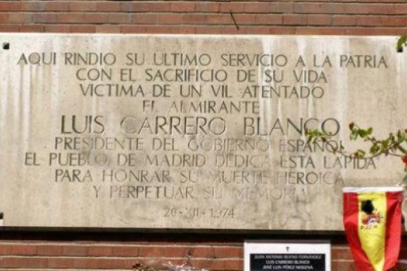 El atentado en el que murieron el almirante Luis Carrero Blanco, su conductor y su escolta en 1973 será el primero que recordará el Ayuntamiento de Madrid con una serie de placas que se colocarán a partir del próximo mes de diciembre en todos los lugares donde el terrorismo provocó víctimas mortales en la capital de España conformando en lo que según Botella se denominará: "El itinerario de la libertad".