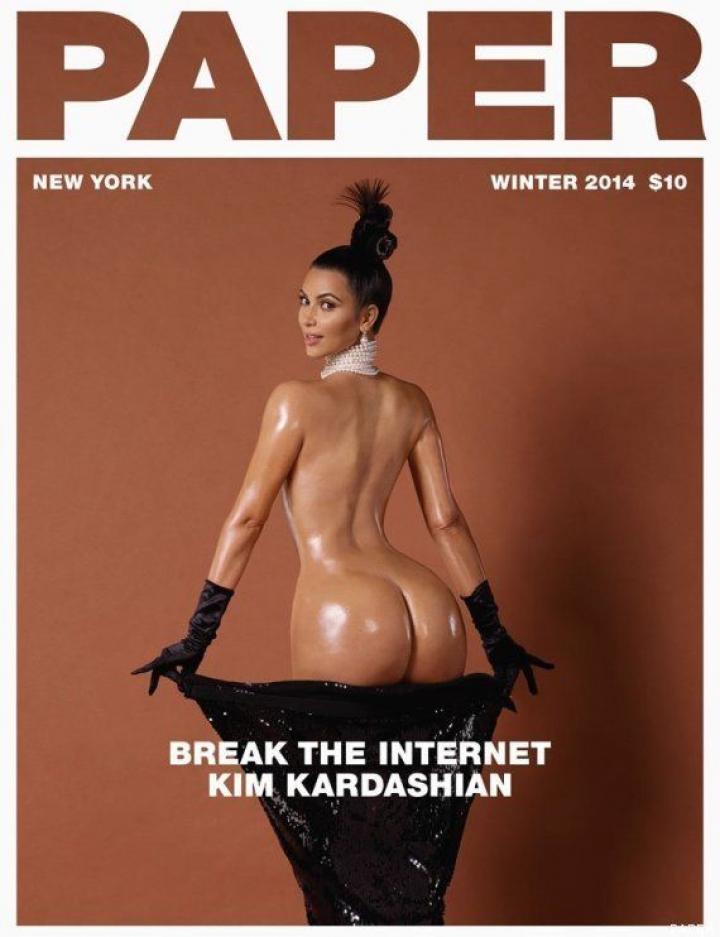 Kim Kardashian no tiene fin. La mediática estrella estadounidense, conocida por a) un vídeo porno, b) un reality show de su familia y c) ser pareja del músico Kanye West, ha ido un paso más allá y ha decidido salir desnuda en la portada de una publicación, la revista Paper.