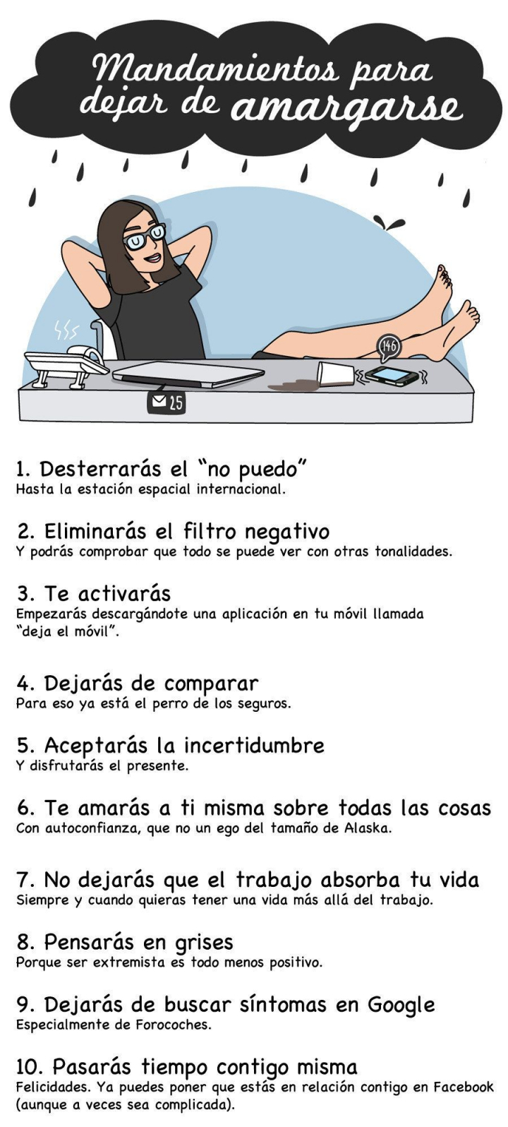 Mientras tanto, ¿cómo podemos todos (ellos y ellas) evitar amargarnos? Córcoles y Taboada lo resumen en 10 claves: