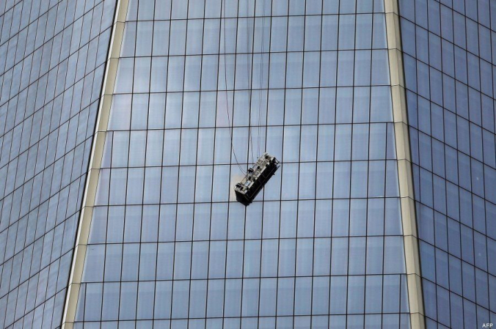 Susto en el World Trade Center de Nueva York para dos limpiacristales (FOTOS)