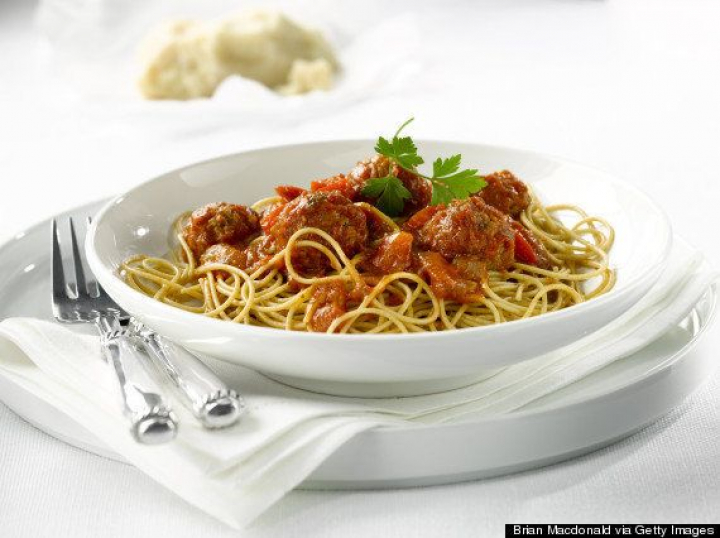 Según el museo Smithsonian, este plato es una invención italoamericana. Los italianos aportaron las albóndigas, para ellos llaman polpettes, que normalmente tienen el tamaño de pelotas de golf y que suelen comerse como un plato de carne en salsa o en sopa. Cuando los inmigrantes italianos llegaron a Estados Unidos a finales del siglo XIX, empezaron a hacerlas más grandes, como pelotas de béisbol, y a combinarlas con pasta y salsa marinera, ya que el precio de la carne las hacía más accesible.
