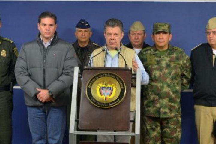 La decisión fue tomada tras confirmar el secuestro del brigadier general Rubén Darío Alzate, comandante de la Fuerza de Tarea Titán, una unidad especial de lucha contra la guerrilla, perpetrado el domingo por las FARC cuando visitaba vestido de civil Las Mercedes, un remoto caserío a quince kilómetros de Quibdó, capital del Chocó (oeste), según confirmó en una rueda de prensa el ministro de Defensa, Juan Carlos Pinzón.