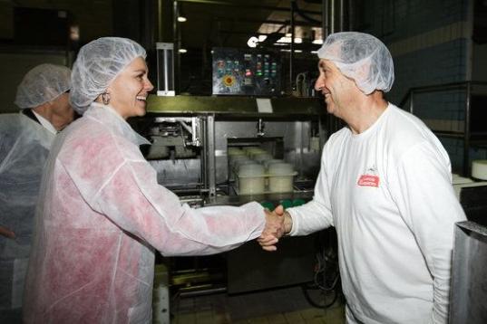 La 'número dos' del PP también tiene querencia por visitar factorías en su tierra, Castilla-La Mancha. Esta imagen corresponde a una visita a una fábrica de quesos: “Tenemos un potencial enorme, que tenemos que desarrollar, con una raza au...