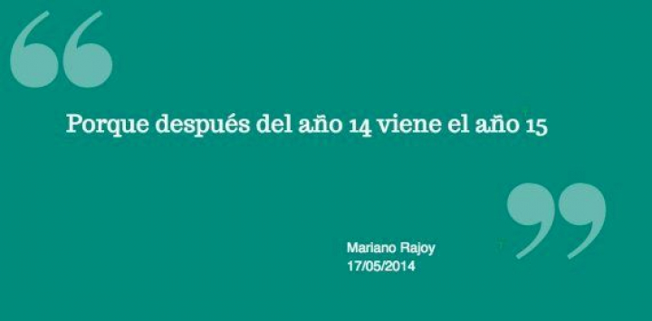 En sus discursos económicos, Rajoy suele referirse a 2012 como el año 12, a 2013 como el año 13, y así sucesivamente. Es muy importante para vender la recuperación tener claro cuál es el orden de los años que pasan. Así lo plasmó en un mitin en Barcelona ante 2.000 personas el pasado mes de abril.
