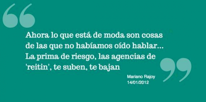En enero de 2012, durante su intervención en la Convención Autonómica del PP, y un día después de que la agencia de calificación S&P rebajara la nota de España y de otros países europeos, el presidente del Gobierno daba su particular punto de vista sobre la situación económica del país. Aquí ya se veía venir su apego por la prima de riesgo, a la que prácticamente mentaría en todos los discursos venideros con cariz económico.