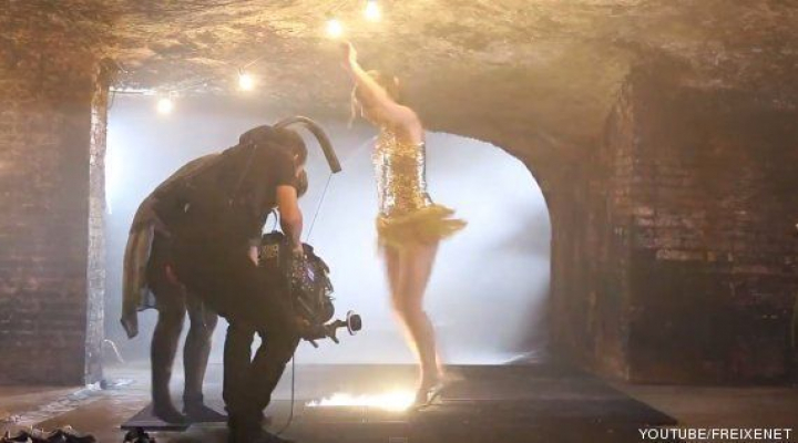 - Que ya hacía bastante frío: en las cavas hay mucha humedad, de ahí que el equipo de rodaje vaya abrigado, y que el cuerpo de baile se tape (mientras puede) las lentejuelas con leggins, chaquetas y sudaderas. En la grabaciónca fuera de la cava, en los exteriores de la bodega, las temperaturas también eran bajas: los forros polares y plumas que lleva el equipo del rodaje lo demuestran.
