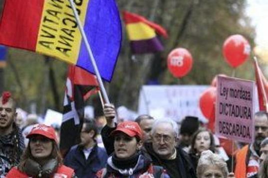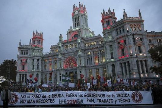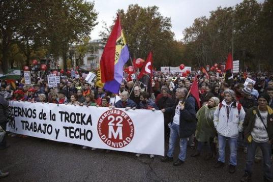 Durante el trayecto, se han escuchado consignas como "¡Que viva la lucha de la clase obrera!" y portaban pancartas en las que se podía leer "Lo llaman democracia y no lo es", "No al pago de la deuda ilegítima" o "Violencia es robar casa y pan".