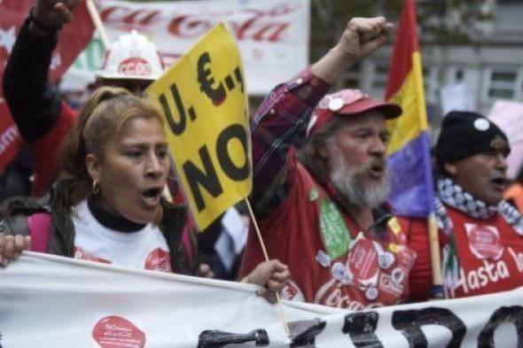 Durante el trayecto, se han escuchado consignas como "¡Que viva la lucha de la clase obrera!" y portaban pancartas en las que se podía leer "Lo llaman democracia y no lo es", "No al pago de la deuda ilegítima" o "Violencia es robar casa y pan".