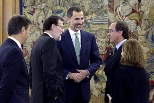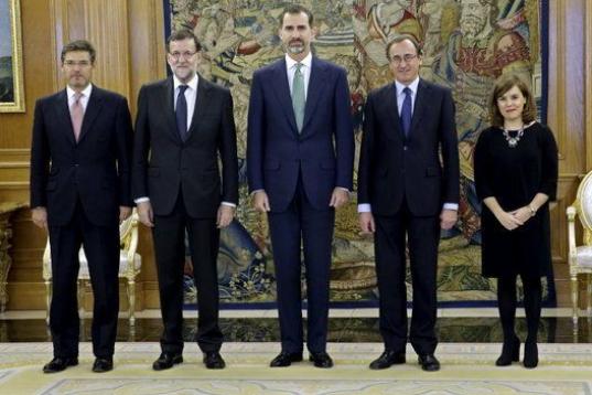Además del rey, al acto en sede palaciega han acudido el presidente del Gobierno, Mariano Rajoy; la vicepresidenta del Gobierno, Soraya Sáenz de Santamaría; el ministro de Justicia, Rafael Catalá, y el director general de los Registros y del Notariado, Francisco Javier Gómez Gálligo.