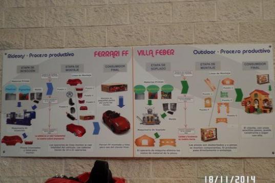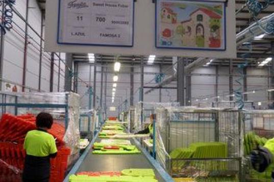 Los juguetes que se fabrican en Alicante, al ser únicamente de exterior (líneas como Pinypon, Nancy o Nenuco se crean en esta factoría alicantina, pero se producen en China), hacen que las máquinas que los producen estén especialmente activas en enero y febrero (para la temporada de verano) y en septiembre, octubre y noviembre, para la de Navidad. Durante esta visita se están dando ultimando los pedidos para Sus Majestades de Oriente (se realizan unos 4.000 productos cada día) y además de ser fabricados, miles de cajas de cartón llenas de 4x4 o casitas de jardín se acumulan en almacenes de altísimos techos.