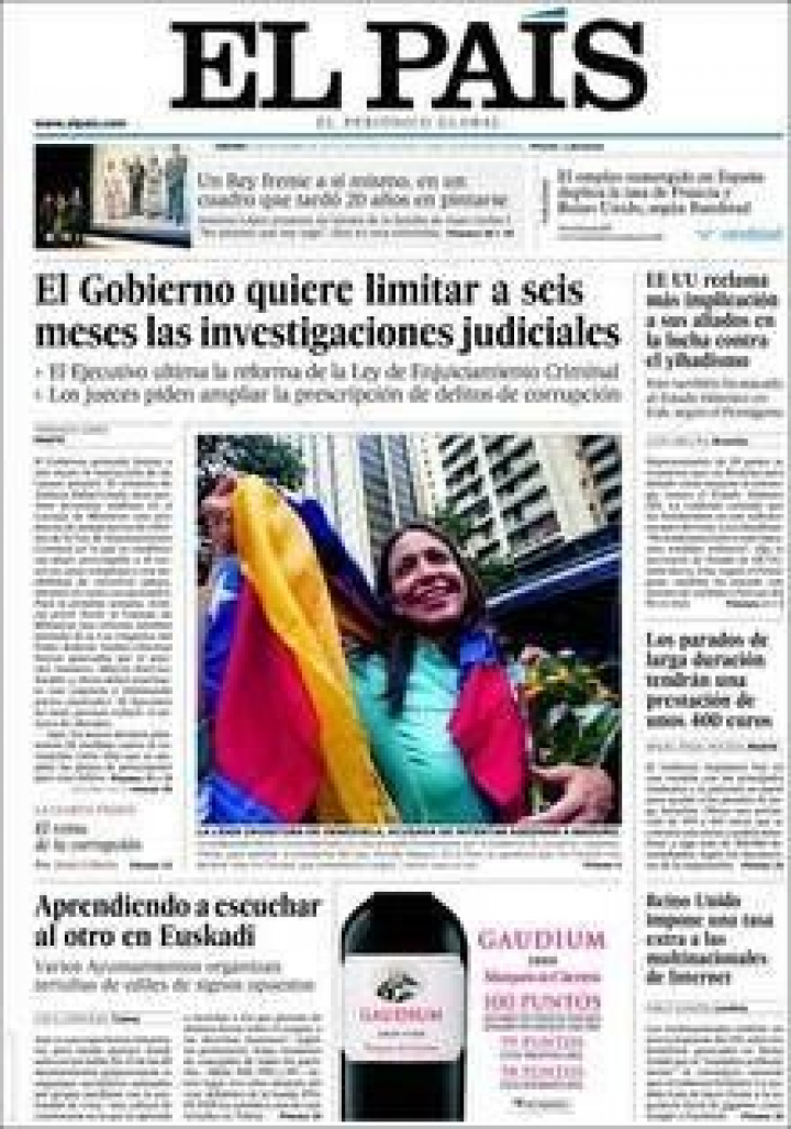 El que fuera director de El País estima que "los cambios legislativos han mantenido intacta la corrupción estructural para financiar a los partidos, a la que se ha sumado el creciente pillaje individual". "A un año de las elecciones, los partidos no pueden cruzarse de brazos" a menos de seguir alimentando a Podemos que amenaza a un bipartidismo asfixiante. De momento "los jueces piden leyes más duras contra la corrupción", señala El Mundo, que editorializa sobre un gran pacto por la Justicia en el que los partidos deberían dejar al margen la lucha partidista porque sin una justicia eficaz es impensable una regeneración de la democracia". En este sentido, El País avanza la iniciativa del gobierno para limitar a seis meses las investigaciones judiciales que será presentada mañana en el Consejo de Ministros.