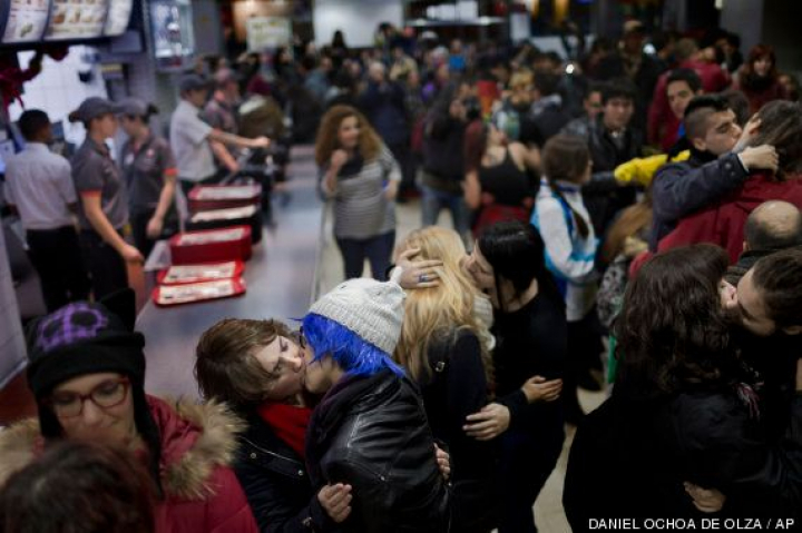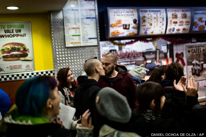 Besada gay en un Burger King de Madrid que expulsó a dos homosexuales (FOTOS)