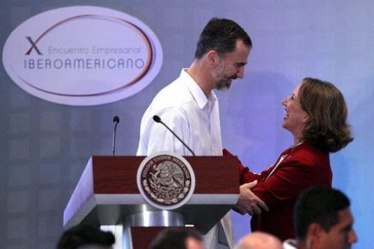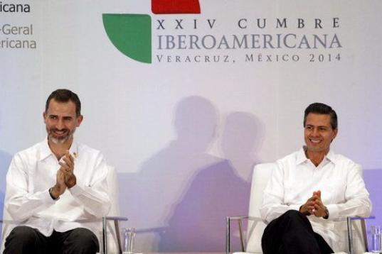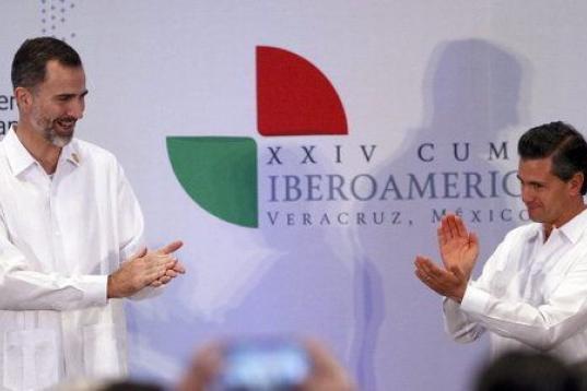 La escena se pudo ver en el hotel de Veracruz donde se clausuró el X Encuentro Empresarial Iberoamericano, al que acudió Felipe VI junto a Peña Nieto, la secretaria general iberoamericana, Rebeca Grynspan, el gobernador del Estado de Veracruz, Javier Duarte de Ochoa, y la presidenta del Banco Santander, Ana Patricia Botín, así como el representante empresarial Valentín Díez Morodo.